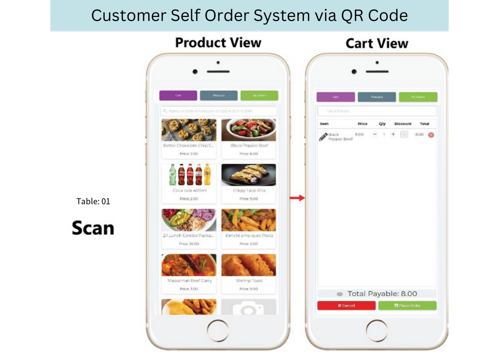 - Customer Self Order System via QR Code
